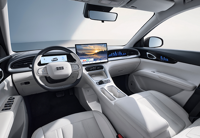 Цифровая приборная панель диагональю 8,8” ярко и четко показывает водителю всю необходимую информацию о скорости, статусе вспомогательных систем и статистике поездки. Мультимедийная система с большим дисплеем диагональю 14,6” обладает новейшей операционной системой Flyme Auto. Система имеет быстрый отклик на касания и интуитивно понятный интерфейс, который можно настроить индивидуально. Особенность мультимедийной системы Flyme Auto — беспроводное подключение мобильных устройств через интерфейс Carbit Link. На дисплее отображается экран телефона, позволяя использовать практически любые приложения, включая навигаторы и прочие.