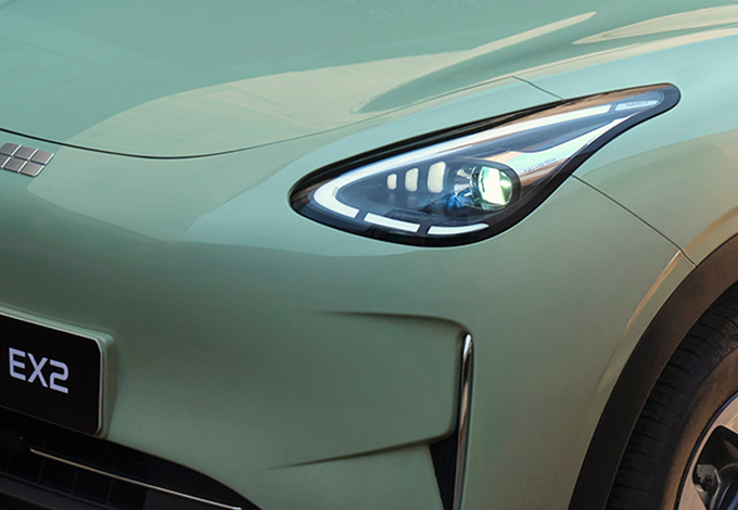 Благородные линии и выразительный силуэт Geely EX2 формируют образ современного автомобиля на новой энергии, сочетающий утонченную эстетику и универсальную функциональность. Гармоничный дизайн и пропорции сочетаются с аэродинамически безупречной формой и фирменным световым рисунком высокоэффективных светодиодных фар.
